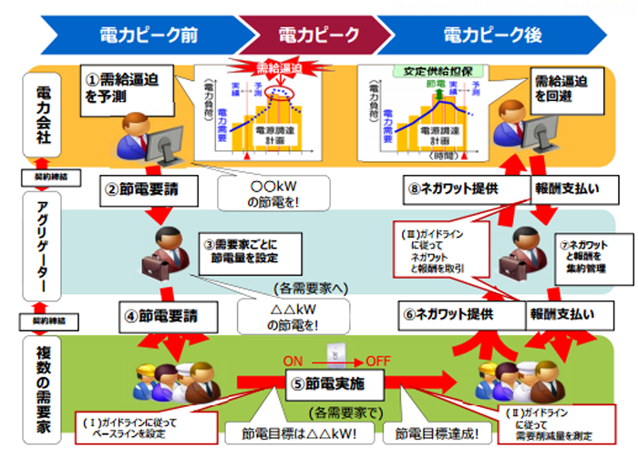 その上、低炭素社会の実現に貢献できるという側面もあります。「ネガワット取引」が拡大していくためには、アグリゲーターという仲介業者が必要になってきます。