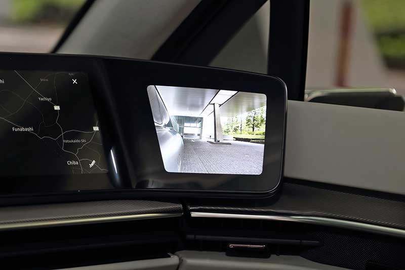 ドアミラーは従来の鏡でなく、小型カメラで捉えた映像を車内のモニターに映し出す方式を採用。ドライバーの視点移動を少なくし、外部の空気抵抗も低減される