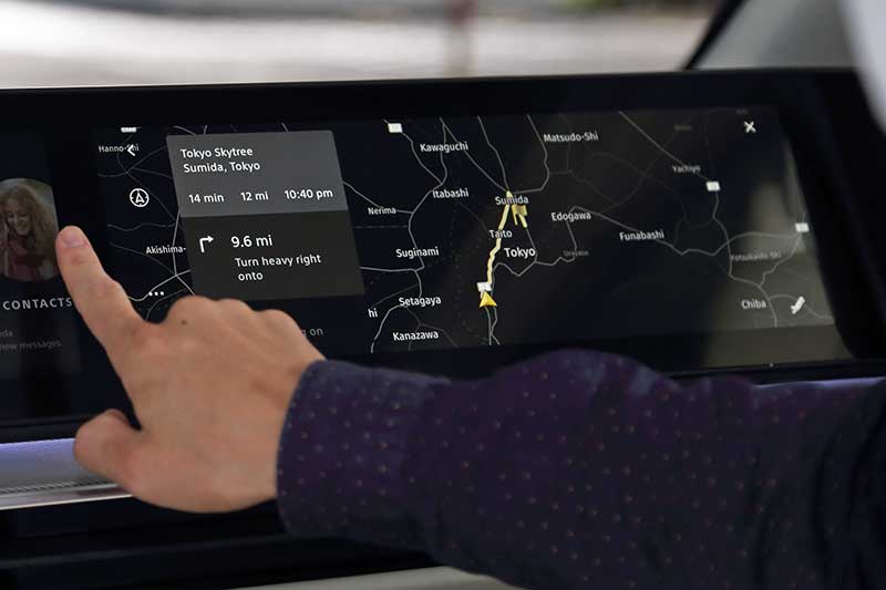 運転席に座ると、ダッシュボード全面を横断する巨大なディスプレイが視界に飛び込んでくる。