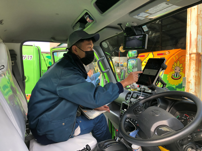具体的には、家庭ごみの集積所の位置情報やごみ収集業務に関するデータを見える化し、ごみ収集を最適化するシステムを提供。また、ごみ収集車にタブレット端末を搭載してもらうことで、収集車同士がお互いの収集状況をリアルタイムに確認・連携し合える環境を構築する。これにより、例えば「遅れが生じている収集車を余力のある別の収集車が支援することが可能となり、さらなる効率化が実現されます」と米山氏は説明する。