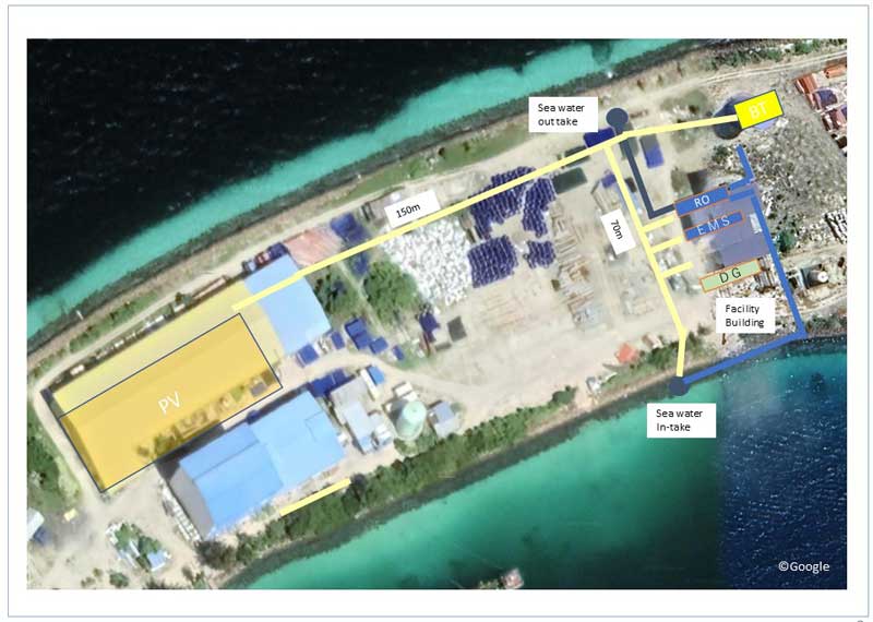 電力を有効利用できないとなると期待される売電収入が得られず、せっかくごみ焼却発電施設を造っても採算が合わない。安定稼働を図るために大型蓄電池導入による系統電力の負荷調整なども検討されたが、電力の大部分をディーゼル発電に頼っている現状を鑑みると、余剰電力を海水の淡水化に充てた方が良いだろうという結論になったという。