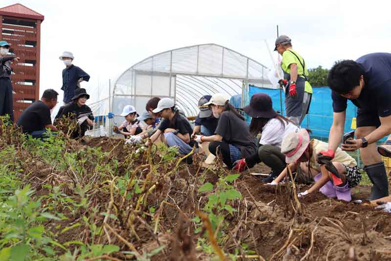2024年8月、ホクレンが運営する「くるるの杜」と連携したイベントの様子。参加者は汗をかきながら、土に触れ、収穫作業を体験した