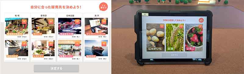 「AGRI QUEST」は「何を・どんな生産方法で作り」「どこに売り」「どんな仲間と協力するか」などの設問に、チームで議論し、どう判断するか(選択肢)を決定。食と農業のつながりを考えながら、「つくる、売る、食べる」のバランスを整えながらサステナブルな農業経営を目指す