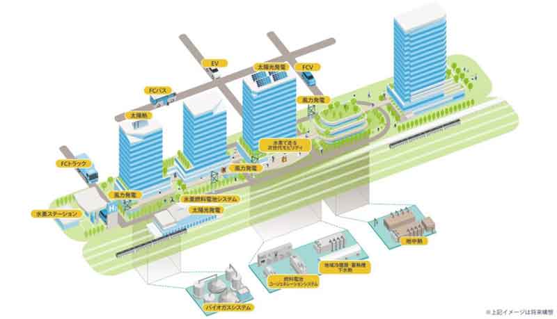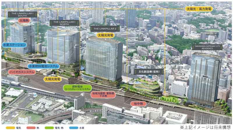 特に水素利用では、TAKANAWA GATEWAY CITYを中心としたグリーン水素の供給(製造・充塡<じゅうてん>・運搬)の構築、水素をエネルギー源とした純水素燃料電池システムの整備など、サプライチェーンの構築に係る先進的な取り組みが進められている。