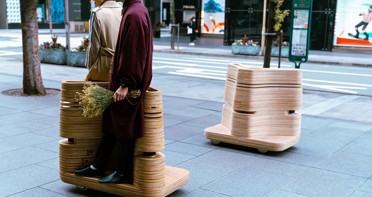 THE LINKPILLAR 1と高輪ゲートウェイ駅を結ぶ街路を走行する自動走行モビリティ。TAKANAWA GATEWAY CITYでは障害物を避けて運転される光景が日常的に見られる