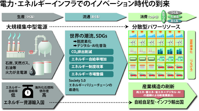 火力発電所などでの一極集中から、さまざまな電力源を用いてエネルギーを生産し、効率よく消費していこうというのが今の社会の流れ。これを後押しするように、約60年ぶりの制度改定も行われる 資料協力:PEP