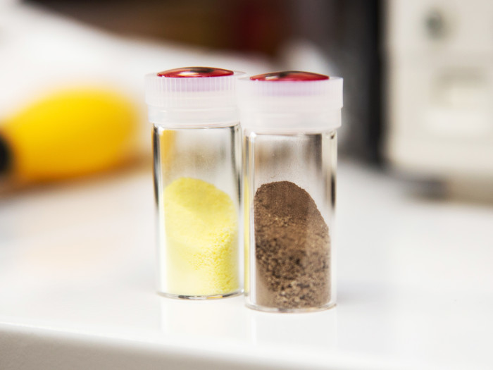 触媒として用いるルテニウム(右)とセリウム酸化物(左)