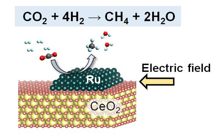 関根教授の研究室は、この現象を利用してこれまでにもアンモニアの合成などを成功させており、今回の手法はその応用。半導体であるセリウム酸化物とルテニウムの微粒子を触媒に用いた。