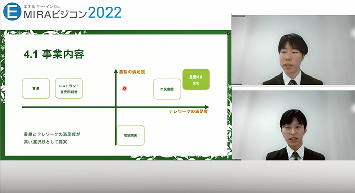 新型コロナウイルス感染症の拡大によって自宅で過ごす時間が増えたことを機に、電力をはじめとするエネルギーの使い方を見つめ直し、サステナブルな社会の実現を目指すビジネスアイデアが全国の学生145チームから集まった。