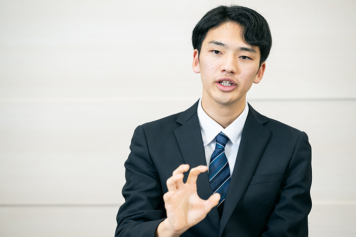 「校内にいつもは見ない古い掲示板があるんですが、ある日珍しく目を向けてみると、たまたま今回のビジコンのポスターが張られていて。締め切りまで1週間しかなかったのですが、谷口君は電力システムを専攻しようとしていてエネルギーには詳しいし、僕も電気は好きな分野。急げば間に合うと思って、参加を決めました」(西村さん)