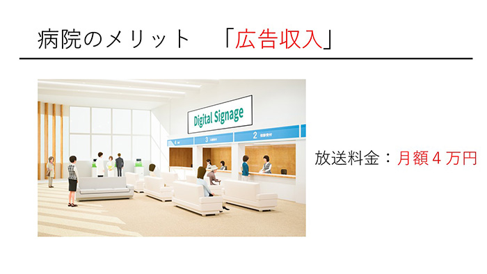 集客は医療機関に広告費を支払って設置するデジタルサイネージによって行う