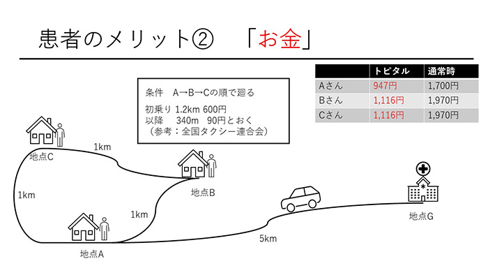 利用者、タクシー業者、医療機関それぞれが納得いくだけのメリットを生み出すことに苦心した