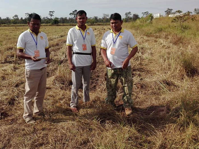 「カンボジアなどでは、農家が自分の畑の大きさを正確に把握していません。本人は2ヘクタール、5ヘクタールと言うのですが、ほとんどが大まかでいい加減。そこで私たちはまず、農地の大きさを特定しています。GPSと専用アプリが入ったスマートフォンを持って畑の周りを歩いてもらうんです。そこに、われわれが集めた現地の作物の流通価格データ、農作物を植えた日などの各データを組み合わせていきます」