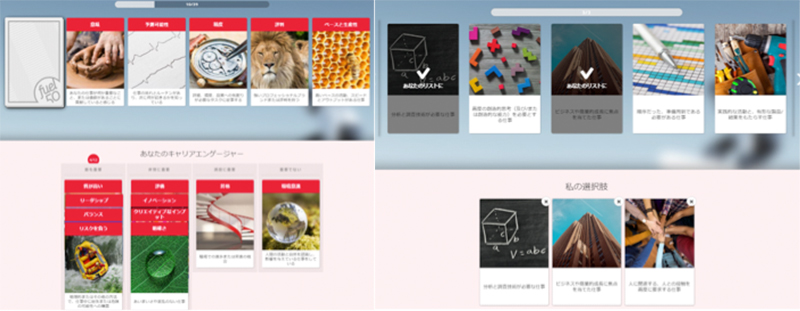 「その思いに対するソリューションを作ろうという発想で生まれたのが、『Fuel50』というキャリア開発支援システムです。仕組みとしては、まず社員はゲーム感覚で自身の価値観、スキル、コンピテンシー、またキャリアドライブという、現在のポジションでさらにアクセルを踏み込みたいのか?別のポジションにチャレンジしたいのか?といったことを可視化し、社内で共有します。