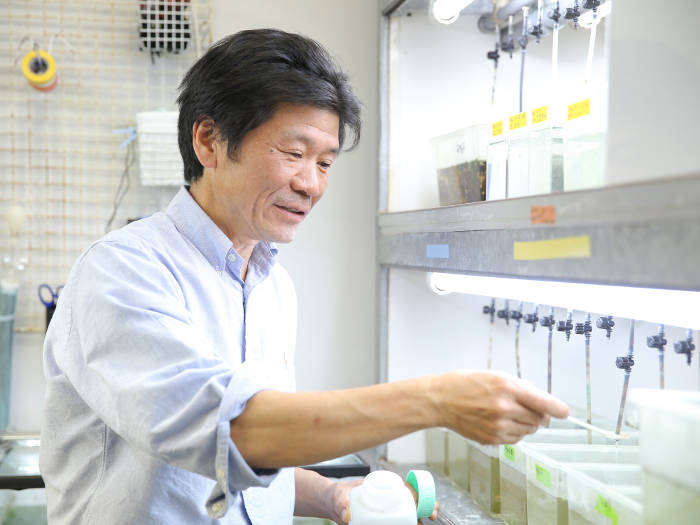 研究室の地下には、チームが飼育する稚魚たちがたくさん