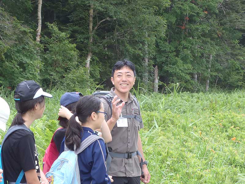 ガイドとして小学生など子供たちに尾瀬の自然や保護活動について解説している