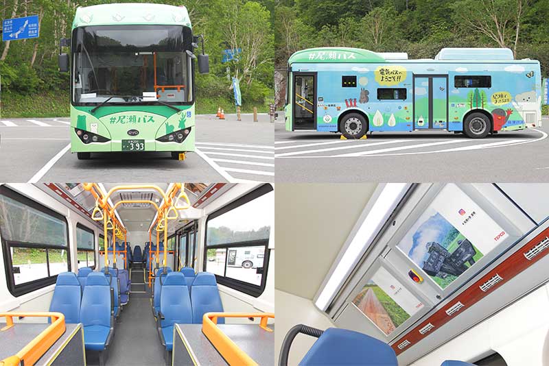 BYD社製電気自動車バス「K7RA」。全長9.48、全幅2.5m。定員は28席40人。搭載電池の容量は217kWh。モーターの定格出力75kWで、一充電あたりの走行可能距離は約180km。御池─沼山間は約9kmのため、1日の稼働に支障はないと予想される。バスのラッピングは東京電力とタイアップ。オフシーズンの会津若松市内走行時も変更はなく、尾瀬のPRに努めるとのこと