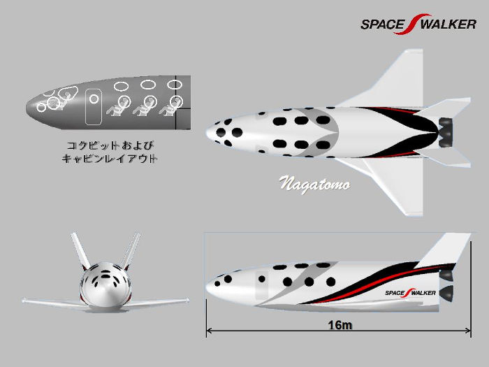 スペースウォーカーが最終目標とする有人宇宙飛行に使用する「スペースプレーン」も、同じくLNGエンジンを採用している。ただ、垂直打ち上げを予定した前2段階の商用機に対して、スペースプレーンは通常の飛行機のように滑走路から水平離陸する点が大きく異なる。