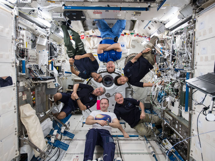 ISSに世界中から集まったクルー。「本当に仲が良く、いい年のおじさん同士が冗談を言い合ったりして、笑いが絶えなかった」という