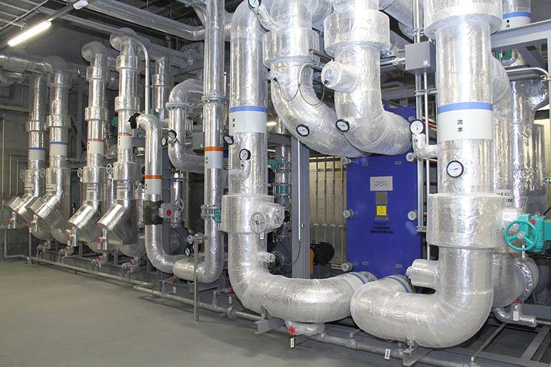地下6階に埋め込まれた温水熱交換器。温水は39℃前後、冷水は9℃前後で、施設内にて飲用以外の用途で活用されるほか、地下通路を介して渋谷ストリームとの相互供給も可能となる