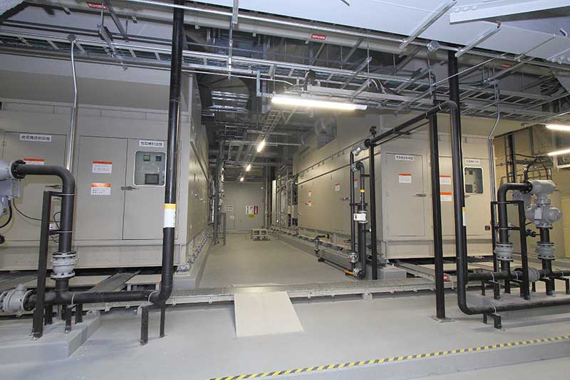 「当施設は渋谷ストリームと熱融通を行います。熱融通とは、建物間で熱源設備を共同利用することです。2施設はおのおので熱電併給システムを保有していますが、例えば、当施設が発生させた熱エネルギーの余剰分を渋谷ストリームへ供給でき、またその逆も可能です。極端な例ですが、いずれかの施設のシステムだけで融通し合える日はコスト削減にもつながります」