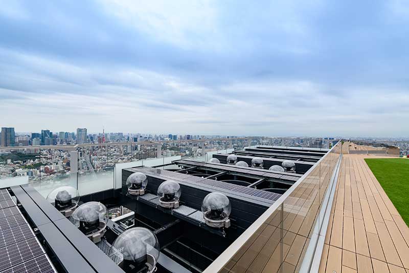 東棟は展望施設「SHIBUYA SKY」の一部敷地にソーラーパネルを設置。