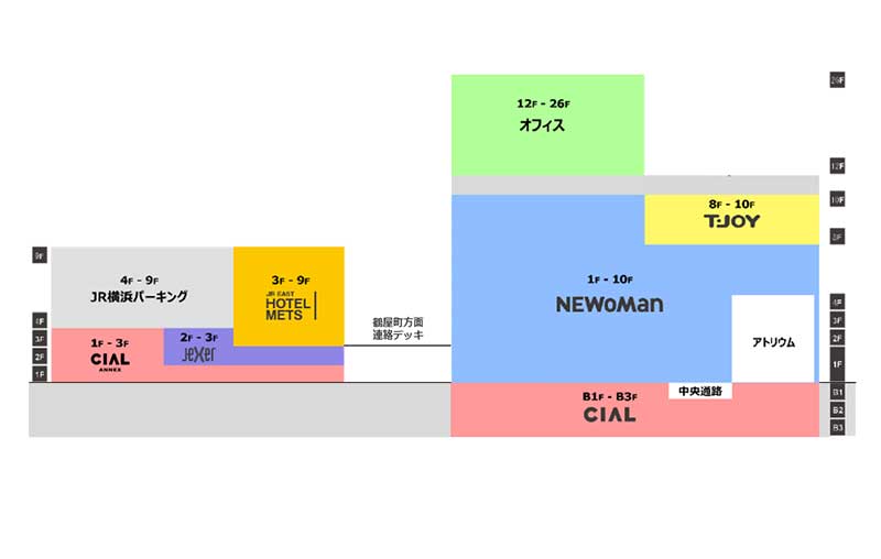 「JR横浜タワー」には「CIAL」「NEWoMan」の商業施設やエンターテインメントコンプレックス「T・JOY」が入る。JR横浜駅からのアクセスの便利さから気軽に立ち寄ることが可能だ