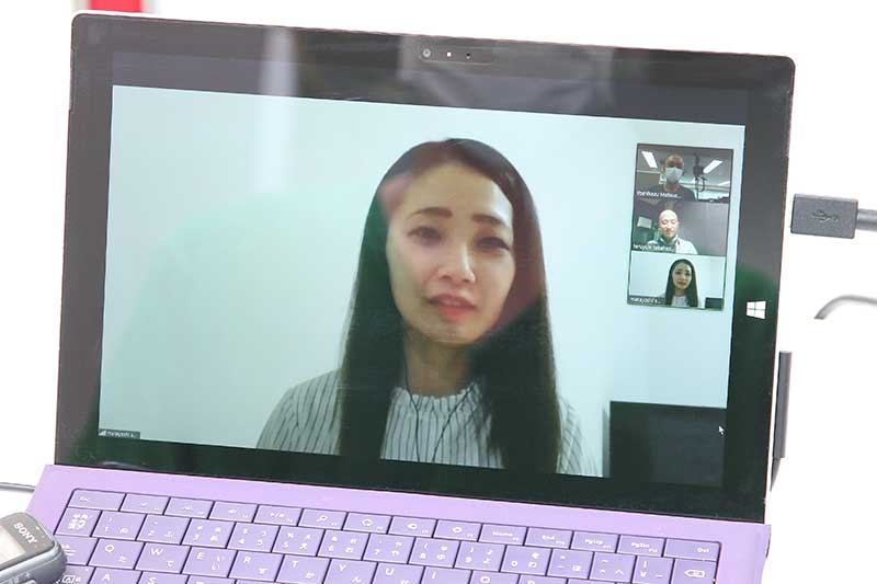 この日、取材に立ち会った「KANDO」スタッフ・又吉沙季氏は、東京の高橋氏とは別に沖縄からZoomへ接続。現地採用・在住とのことだが「ディスカッションがうまくできていれば何の問題も感じません」と語る