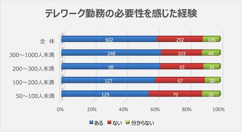 調査当時、テレワークの必要性を感じたことがある人は、テレワーク・デイズ参加者を含め全体の60%ほど。