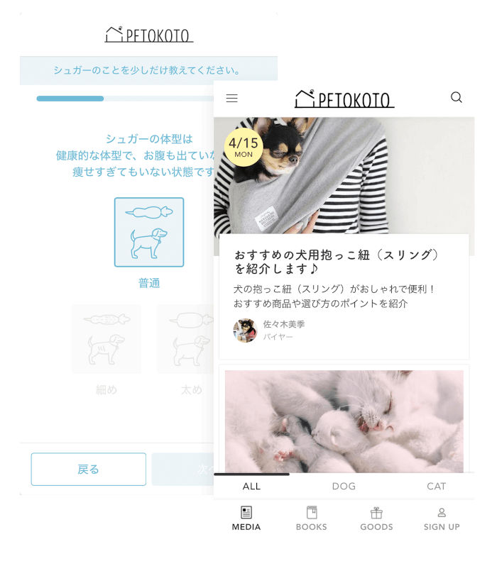 「シロップは2015年の創業当初、ペット専用のクローズドSNSを運営していましたが、その後、インスタグラムなどが台頭したためサービスを閉鎖。現在は保護犬・保護猫と、彼らを迎えたい人をつなぐマッチングサイト『OMUSUBI』(お結び)と、ペットの食事や健康に関する情報を発信するペットライフメディア『PETOKOTO』(以下、ペトこと)を運営しています」