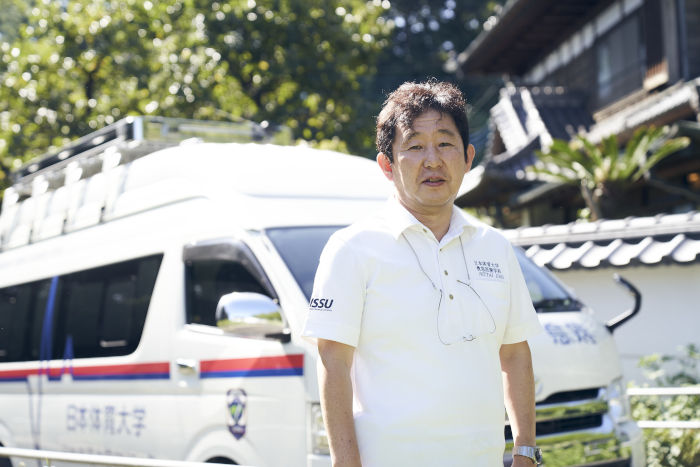 日体大で保健医療学部救急医療学科長を務め、日本救急医学会評議員、救急医学の指導医・専門医である小川理郎(おがわさとお)教授は、「VRの導入を検討し始めたのは4月ごろ。新型コロナウイルスの影響で対面授業が不可能になったとき、われわれのように将来の救急救命士を教育指導する医療の学科は、実践的な医療現場と介護の現場などを想定した実習を取り入れなければならないため、教育の現場は大混乱に陥りました。何か別の有用な手立てはないかと検討していたところ、医療の研修現場などで活用されていたVRに目が留まりました」と話す。