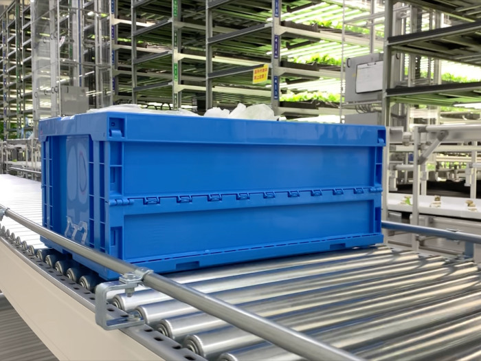 野菜は出荷されるまで4つの部屋を移動する。種から発芽させ苗床で苗を育てる「育苗室」、苗を収穫できる⼤きさに育てる「栽培室」、収穫した野菜を計量・梱包する「梱包室」、段ボールに詰めた野菜を出荷まで保管する「冷蔵庫」だ。その中で、育苗室と栽培室が“畑”の役割を担う。
