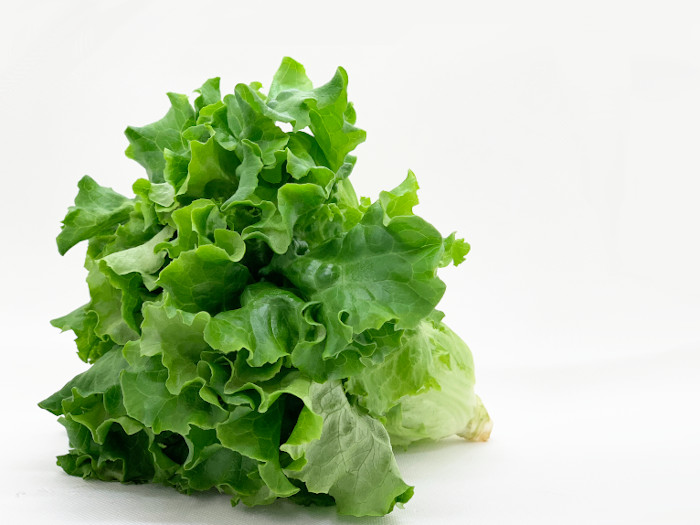 彩菜⽣活の⼯場で作られたリーフレタスは、加⼯⽤のためスーパーなどで⾒かけるものよりも⼤ぶり