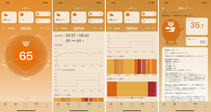 若年女性層をターゲットにしているだけあって、データの送付先はPCではなくスマホ。データを管理、閲覧するための専用アプリも配信している。さらに、スマートリモコン(別売)を組み合わせると、センサーが読み取った睡眠状態に合わせてエアコンが調整され、最適な室温をキープすることもできる。
