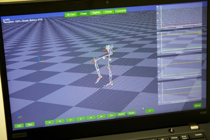 「e-skin MEVA」で計測された動きのデータは、PCの画面上で精密に再現される
