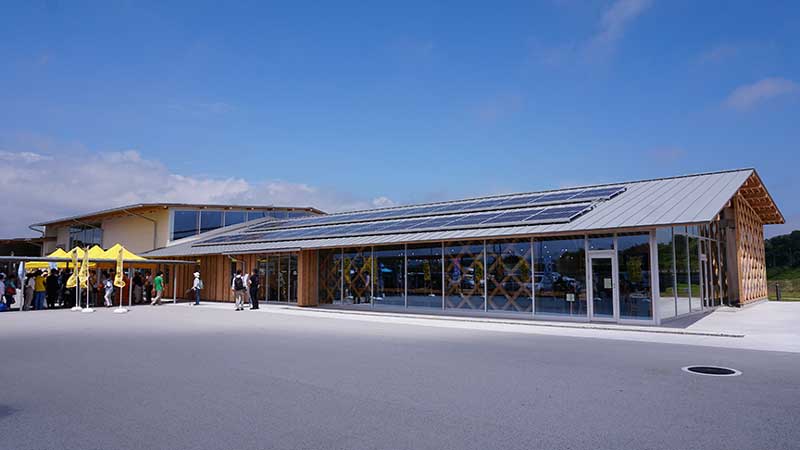 「道の駅なみえ」の屋根にも大量の太陽光パネルが備わる