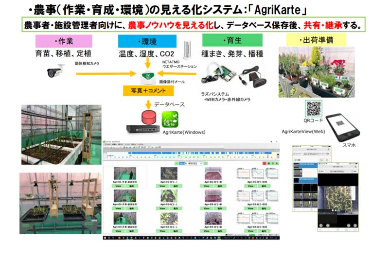 「農家がどんな作業を行い、そのときの苗の育成状況や温室内の温度、湿度といった環境を情報として蓄積し、見える化された知見を共有・継承することを目指しています」