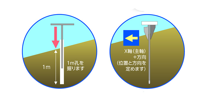 地面に穴を掘り、センサー部を挿入するため、外部影響を受けにくい。設置が簡単なのも魅力