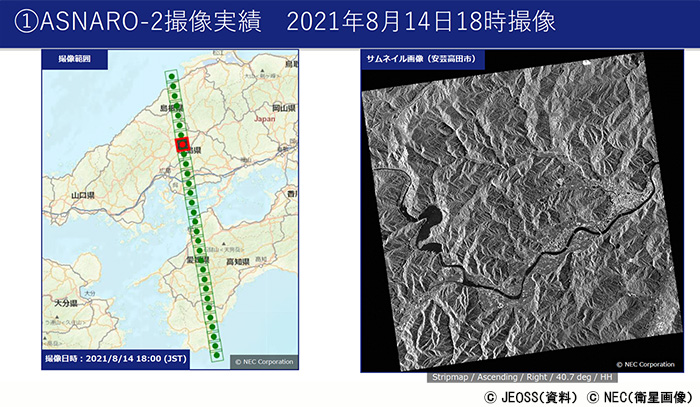 「国内の水害や土砂災害、噴火などに対して、ASNARO-2は常に緊急観測を行っています。最近でいえば、7月の静岡県熱海市で発生した土砂災害や8月の秋雨前線による大雨被害。大きな被害が出る可能性を感じたものには、可能な限り人工衛星のリソースを割り当て、画像を防災関係機関などに提供しています」