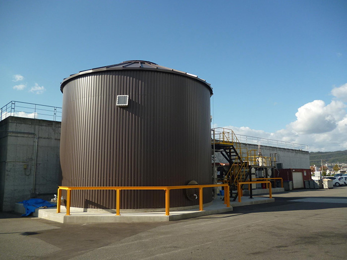 「メタン発酵槽は廃棄物が届くたびにつぎ足せますし、発生したメタンガスは古いものから出ていく構造になっています」
