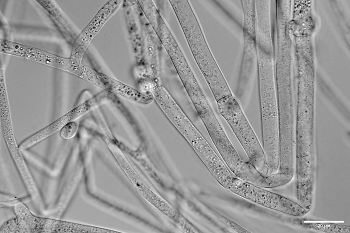 天野教授が研究対象としてきたキノコの菌。写真はキチチタケの菌糸