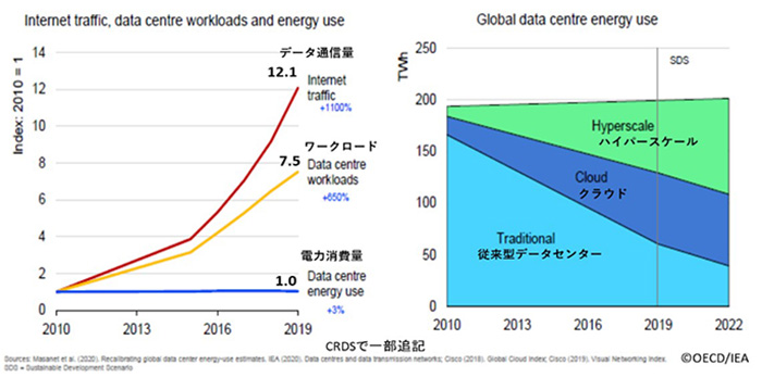 出典:CRDS調査報告書『デジタル化とエネルギー 〜ICT セクターの持続可能な成長のために〜』(P.33コラム9図表)より