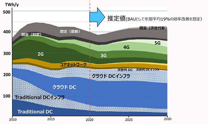 「先述の通り、情報通信ビジネスにおいては、電気代はコストです。高コストなサービスは利用者にも敬遠されるため、企業は技術に投資して効率よく電力を使用する方法を考えるわけですね。逆の見方をすれば、必要な電力は一定のラインのまま上げないように維持し、コスト増を避けながら技術を進化させ、ビジネスを成立させてきたとも言えます。技術が進化してコストを下げられる余地ができれば、その分を開発投資に回して、さらなる効率化や新しいサービス開発に割いてきたのではないでしょうか」(尾山氏)