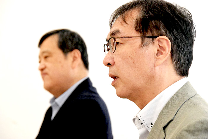 ICTの進展と電力の消費推移の関係を調査する尾山氏(写真手前)