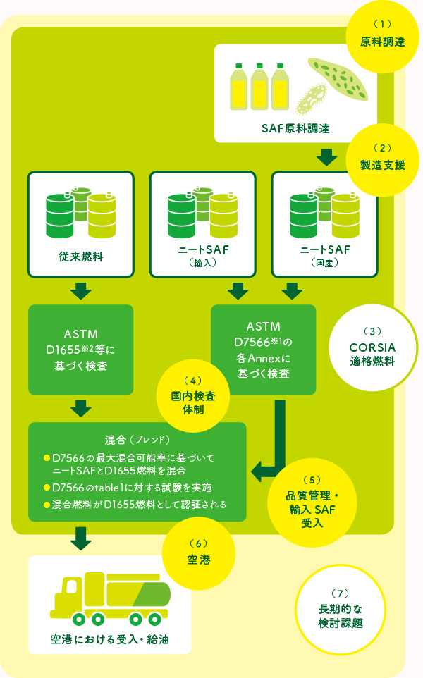 SAFにはコストの他にも、原料調達・製造・輸送・給油までのサプライチェーン、検査体制、法整備などさまざまなハードルが待ち構えている。