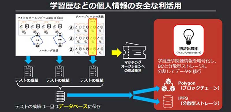 講座の成績や学習履歴データを扱うONGAESHIは、個人情報の管理にもブロックチェーンシステムを活用する予定