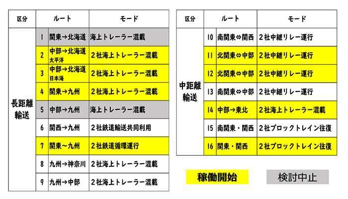 「主に取り組んできたのは、『共同幹線輸送』『共同配送』『製造・配送・販売で発生する課題への対応』です。例えば、関東と関西を行き来する鉄道往復輸送により、実施ルートのモーダルシフト化率(輸送距離 500km 以上における産業基礎物資以外の一般輸送量のうち、鉄道または海運により運ばれている輸送量の割合)を30%向上。また、北海道エリアでは、北関東からの2つのルートで2社の商品を混載して北海道へ輸送、物流拠点も共有することで共同配送を実現。CO2排出量15%削減やドライバーの車両待機時間をトレーラー1台当たり1時間短縮するなど、さまざまな対策を実行してきました」