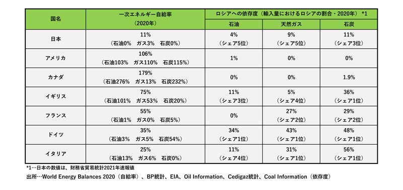 2020年のEU主要国のロシアへの依存度。石油は英11%、仏0%、独34%、伊11%。天然ガスは英5%、仏27%、独43%、伊31%。ドイツとイタリアの依存度が高く、侵攻の影響を色濃く受けたと言える