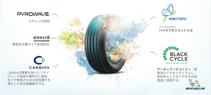 2021年にはフランスのスタートアップ「キャルビオ」との提携により、酵素を使いペットボトルを元の純粋なモノマーに分解することに成功した。リサイクルされる素材には、タイヤ製造に使用するポリエステルが含まれ、年間約40億本のペットボトルがタイヤ製品にリサイクルされる可能性が見込まれる。