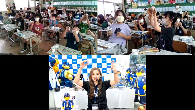 オンライン電池教室は2022年で20周年を迎え、京都市立竹の里小学校ではコロナ禍の授業参観として、周年記念の電池教室が実施された